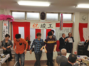 そして竣工式典は賑やかな雰囲気で進行していきました。昭和初期には現在の和歌山電鐵貴志川線に津秦駅があったこと。津秦の地名は、津と和田を結ぶ地点であったことから津和田から津秦になったこと。津秦駅を復活させて欲しいこと。そんな紹介がありました。そして自治会役員の皆さんが作った津秦の歌の紹介。毎朝実施しているラジオ体操をみんなで実施したことも盛り上がった企画となりました。