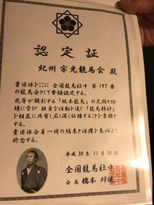 紀州宗光龍馬会が発足しました。平成30年12月8日に発足させることになり、197番目の龍馬会となります。和歌山県は陸奥宗光と坂本龍馬の師弟の名称を掲げ、この会を発足させました。その意思を引き継ぎたいと話し合いました。