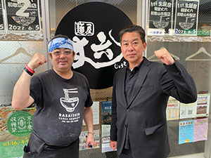 南海和歌山市駅「キーノ和歌山」にある麺屋丈六さん。関西の人気店でいつもお客さんが並んでいます。活動の途中で立ち寄りました。オーナーが「片桐さん、おめでとうございます。本当に良かった」と近寄ってくれました。
