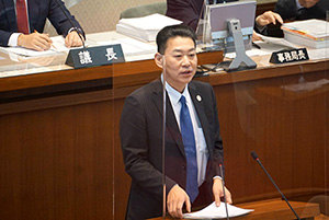 本定例会の冒頭、知事から「新年度の二つの柱についての説明がありました。その柱のひとつが「新しい世界への対応と挑戦」の取り組みです。