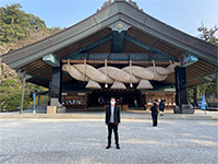島根県への視察で出雲大社を訪れて参拝したこと。日の沈む神社の空気に触れることができました。